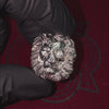 This ring features a split design with one side sculpted as a skull and the other as a detailed lion’s mane, surrounded by blooming roses. Crafted in high-polish 925 sterling silver, it represents the balance between life and death, strength and fragility.